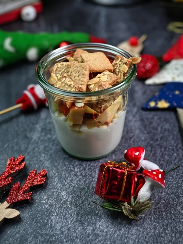 - Spekulatius-Mousse mit Keks-Crunch, fein garniert im kleinen Weckglas